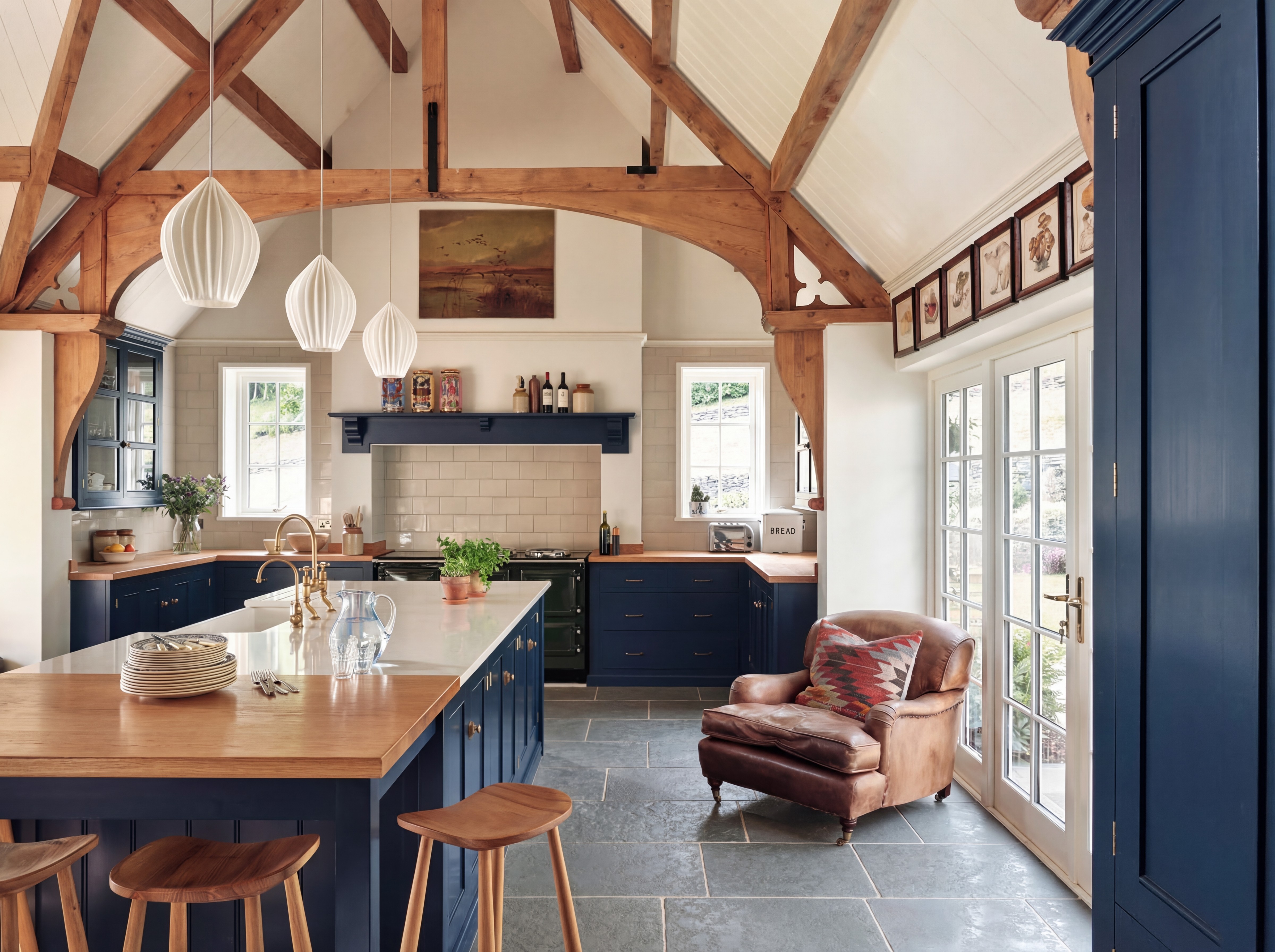Natural materials with character – Solid wood or painted timber, natural stone or wood worktops, ceramic tile